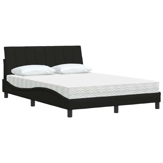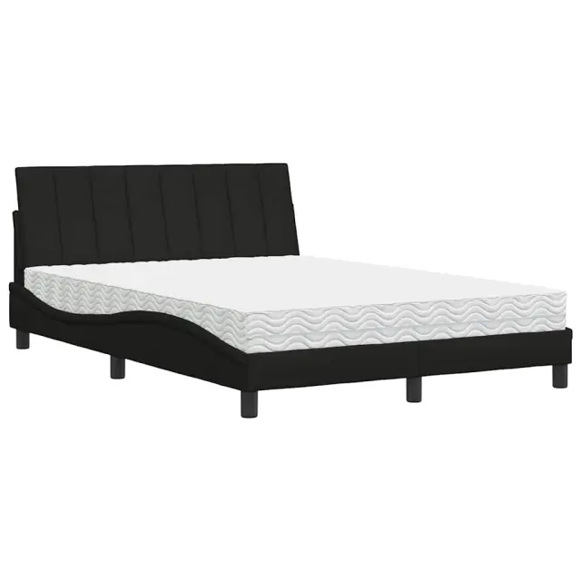 vidaXL Postelja z vzmetnico črna 140x200 cm blago