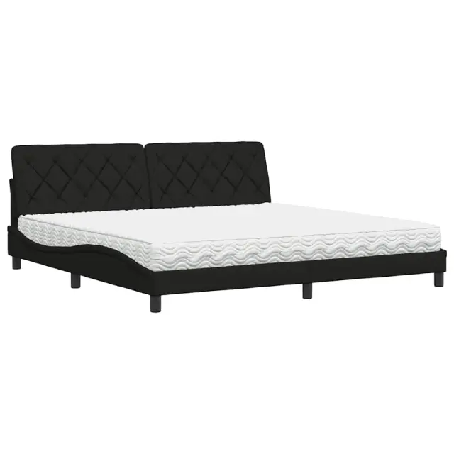 vidaXL Postelja z vzmetnico črna 200x200 cm blago