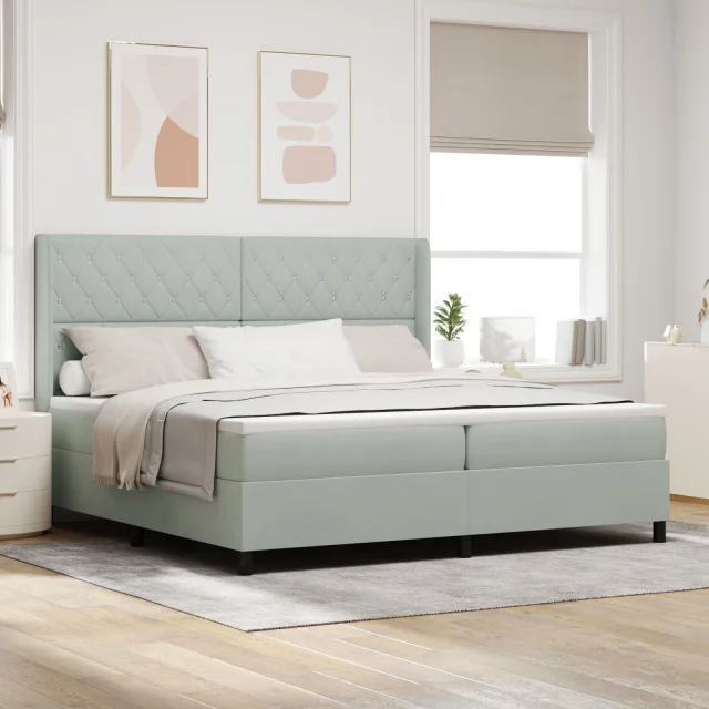 vidaXL Postelja z vzmetnico in LED svetlobo Siva 200x200 cm Žamet