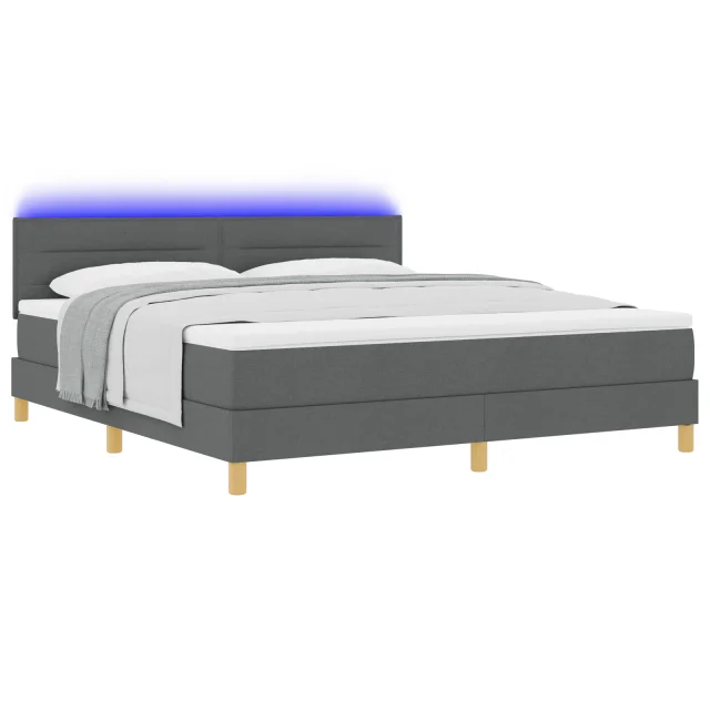 Ta postelja z vzmetnico je odlična za pare, saj ponuja udobje in moden izgled. S svojim elegantnim temno sivim blagom in vgrajeno LED osvetlitvijo, tvoj prostor spremeni v udobno zen oazo, kar povezuje stil in funkcionalnost.