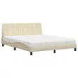 vidaXL Postelja z vzmetnico krem 160x200 cm blago