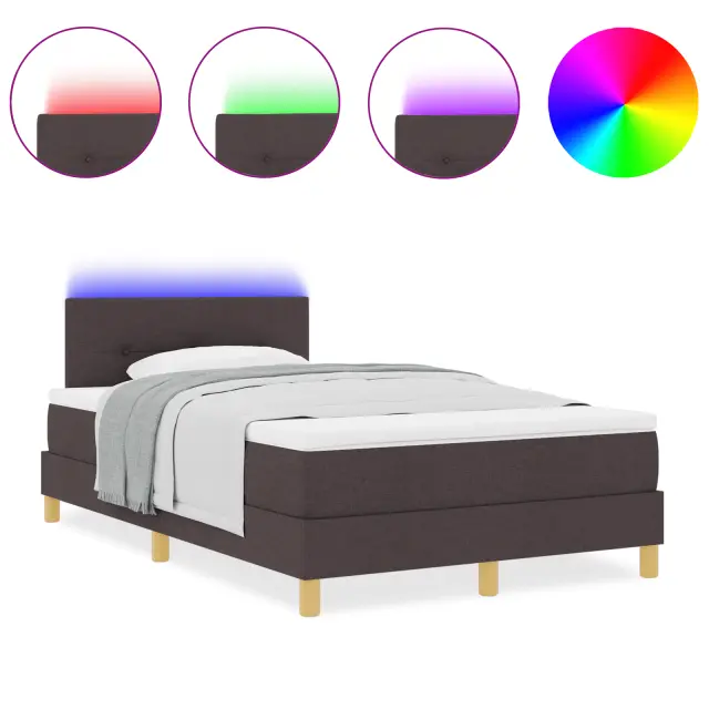 vidaXL Postelja z vzmetnico & LED temno rjava 120x200 cm tkanina