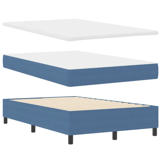 Ta postelja z vzmetnico je vse o udobnih in modernih nočeh. Popolnoma se prilega sodobnim spalnicam ali gostinskim sobam. S čudovito modro in belo žametno obdelavo ne le da popestri prostor, ampak tudi ustvari prijetno vzdušje za počitek po napornem dnevu.