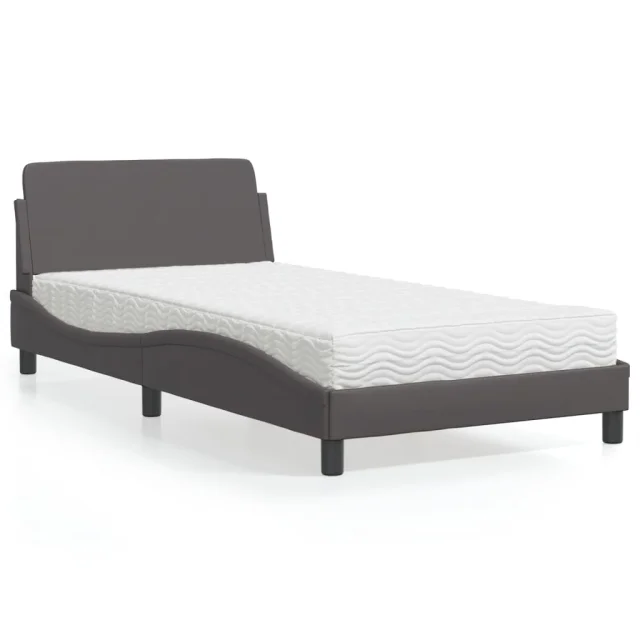 vidaXL Postelja z vzmetnico siva 100x200 cm umetno usnje