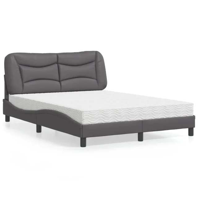 vidaXL Postelja z vzmetnico siva 120x200 cm umetno usnje