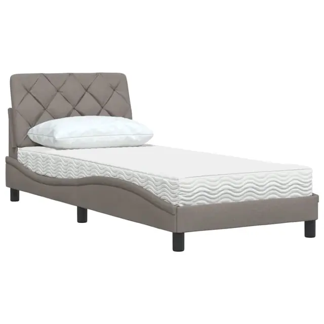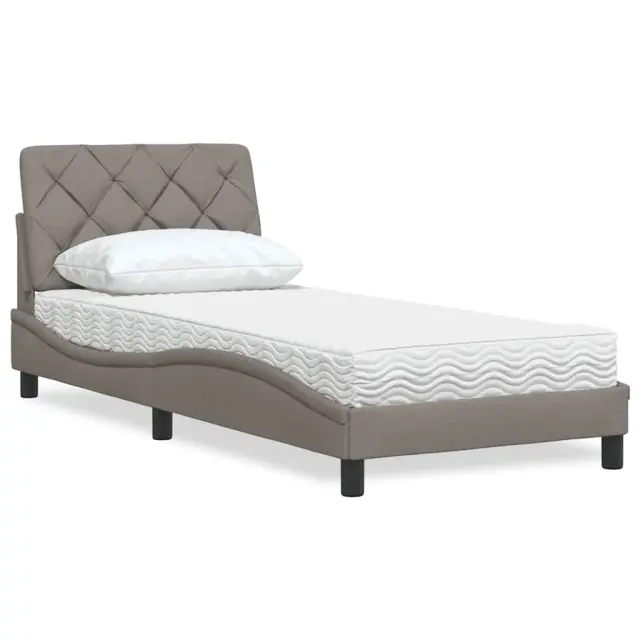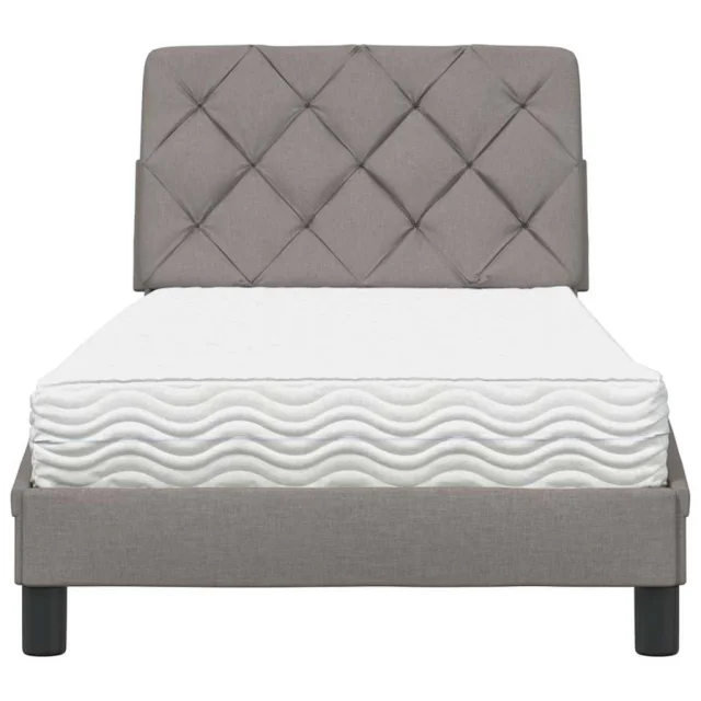 vidaXL Postelja z vzmetnico taupe 90x200 cm blago