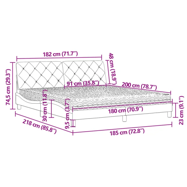 • Celotne dimenzije: 218 x 185 x 74,5 cm (D x Š x V)