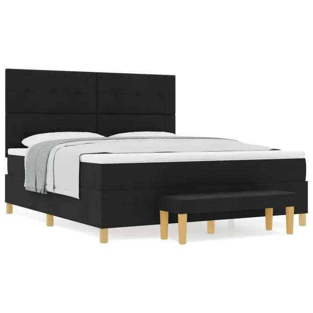 Ta postelja z vzmetnico združuje udobje in stil, zato je odlična izbira za vsakogar, ki želi osvežiti svojo spalnico. Njena trendovska črna barva in močan lesen okvir niso le postelja, ampak tudi izjaven kos, ki doda eleganco in mir v vsak prostor, saj udobno prilega dva odrasla.