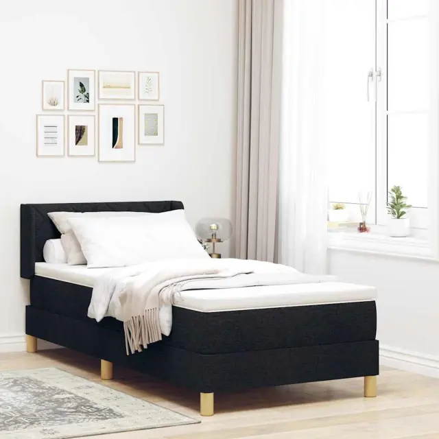 vidaXL Postelja z vzmetnico z vzmetnico Črna 90 x 200 cm blago