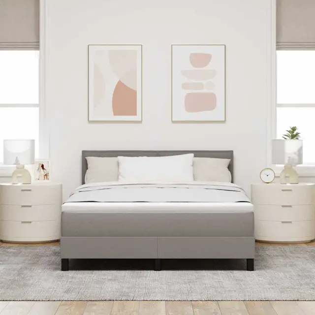 vidaXL Postelja z vzmetnico z vzmetnico Taupe 140 x 190 cm blago