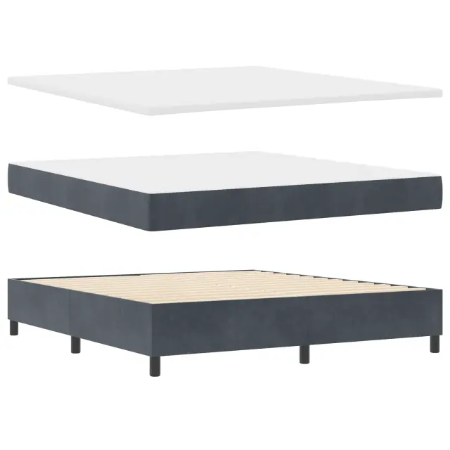 Postelja z vzmetno bazo s vzmetnico združuje razkošno udobje s sodobnim videzom. Temno siv žametni pokrov izboljša vzdušje v spalnici in ti pomaga pri dobrem nočnem počitku.