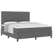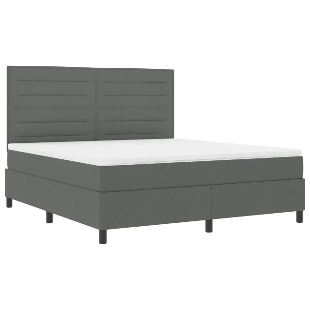 Ta postelja z vzmetno škatlo združuje stil in praktičnost, kar je odlična spalna rešitev za vašo spalnico. S svojo temno sivo tkanino in trdnimi lesenimi nogami, izboljša videz ter zagotavlja udobje in trajnost.