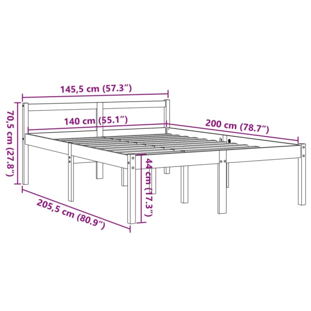 vidaXL Postelja za starejše voščeno rjava 140x200 cm trdna borovina