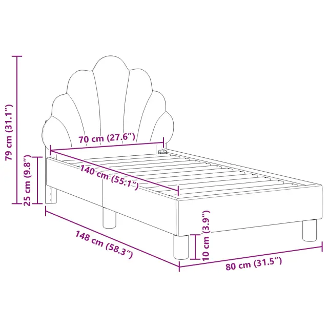 vidaXL Posteljica za malčke z vzglavjem Vijolična 70 x 140 cm Žamet
