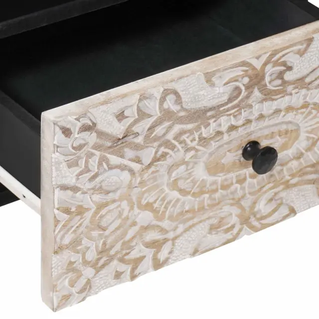 Ta nočna omarica iz trdnega mangovega lesa prinaša odličen rustikalni pridih v vaš bivalni prostor. Odlična je za notranjo uporabo, saj ponuja trdno in stilno rešitev za shranjevanje. Njen pravokoten obliko omogoča dovolj prostora za nočne potrebščine, medtem ko edinstvene variacije lesene strukture dodajajo posebno vrednost vašemu prostoru. S svojim klasičnim in brezčasnim dizajnom je ta kos idealen za vse, ki iščejo funkcionalnost in lepoto v svoji spalnici.