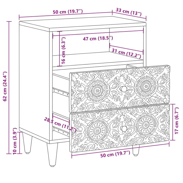 Ta nočna omarica iz trdnega manga prinaša malo rustikalne elegance v tvoj dom. Je trpežna, zanesljiva in dodaja čar vsakemu prostoru, pa naj gre za spalnico ali dnevno sobo. Zasnova je skombinirana tako, da ustreza modernemu življenju, njene preproste črte pa se ujemajo s skoraj vsakim dekorjem. S svojimi toplimi barvami in naravnimi vzorci ti omarica nudi tako funkcionalnost kot vizualno privlačnost, zato je odlična izbira v katerem koli prostoru.