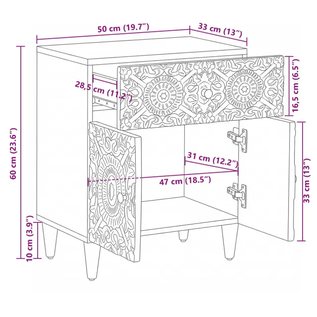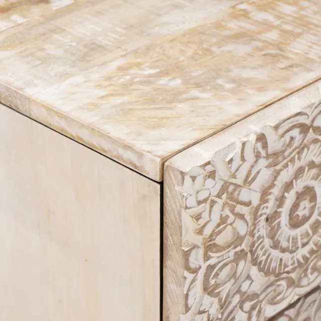 Ta čudovita nočna omarica iz trdega mangovega lesa ponuja trdno eleganco in naravno lepoto. Njena moderna pravokotna oblika prikazuje edinstveno lesno teksturo, tako da je vsak kos malo drugačen – kar doda osebnost in toplino tvojemu prostoru. Idealna je za prostore, kjer cenijo obrtniške spretnosti in preprosto eleganco, saj lepo obogati spalnice in dnevne sobe.