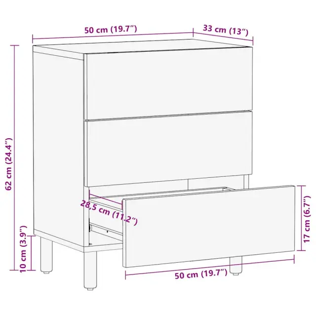 vidaXL Posteljna omarica črna 50x33x62 cm Masivni neobdelan les Mango