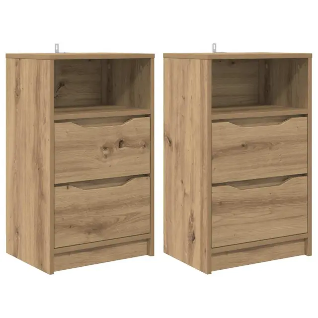 vidaXL Posteljne mize s predalom 2 pcs Umetni hrast 40 x 30 x 467 cm