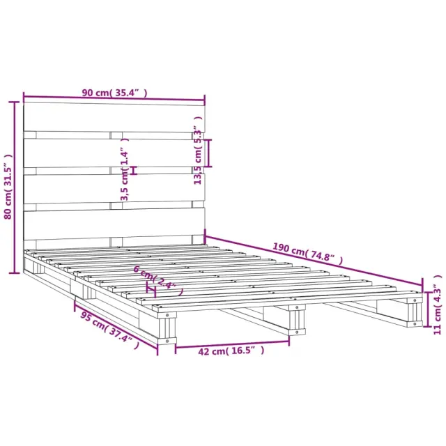 vidaXL Posteljni okvir 90x190 cm trdna borovina 3FT