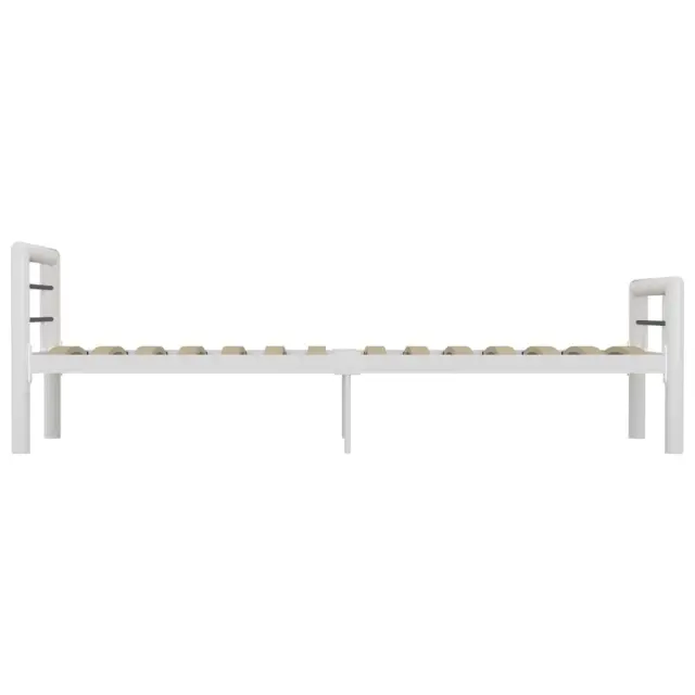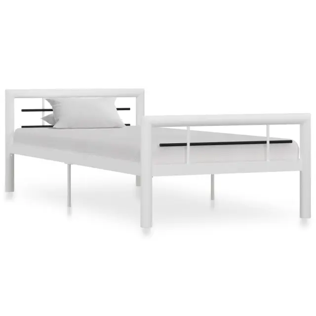 Z našim kovinskim posteljnim okvirjem lahko v svoji spalnici ustvarite elegantno in klasično vzdušje! Posteljni okvir ima trdno konstrukcijo iz kovine. Trdne letve nudijo zadostno podporo in so zelo udobne. Vse te lastnosti vam bodo zagotovo nudile odličen nočni spanec! Posteljni okvir je primeren za vzmetnico velikosti 100 x 200 cm. Sestava je preprosta. Upoštevajte, da paket vsebuje samo posteljni okvir s podom iz letvic. Vzmetnica ni priložena. V naši trgovini si lahko ogledate primerno vzmetnico.Barva: Bela in črnaMaterial: KovinaCelotna velikost: 212 x 107,5 x 65,5 cm (D x Š x V)Velikost primerne vzmetnice: 100 x 200 cm (Š x D) (vzmetnica ni priložena)Spalna višina, merjena od tal: 32 cmPriloženo letveno dno: DaPotrebno sestavljanje: Da 284545