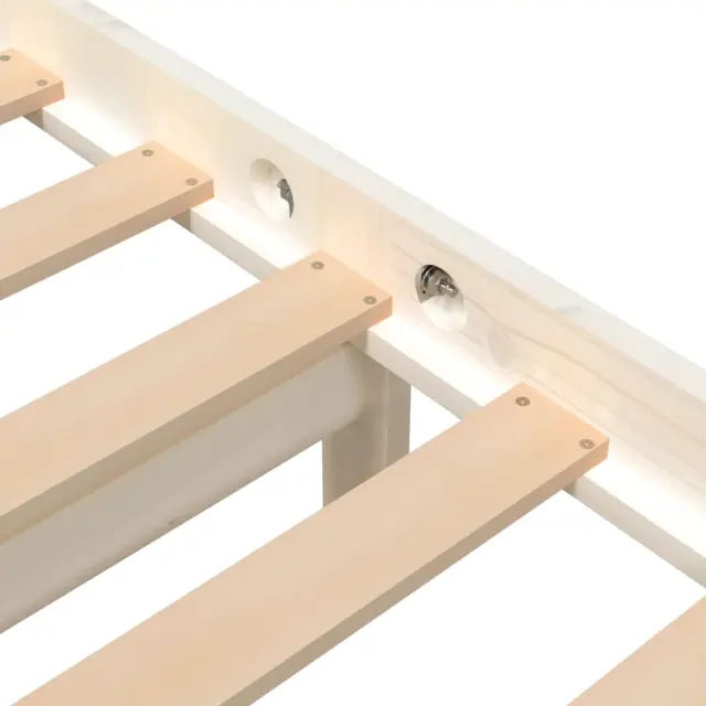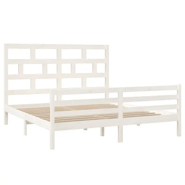 Ustvarite moderno spalnico s tem lesenim posteljnim okvirjem! To je praktičen in dekorativen dodatek za vaše notranje prostore. Vrhunski material: trdna borovina je čudovit naravni material. Borovina ima ravne vzorce, grče pa dajejo materialu njegov značilen, rustikalen videz.Trdne letvice: Letvice iz vezanega lesa omogočajo dobro porazdelitev teže in zagotavljajo, da vzmetnica ostane na mestu ob vsakem zasuku in obračanju vašega telesa med spanjem.Privlačen dizajn: Vzglavje in vznožje sta oblikovana tako dekorativno kot tudi praktično. Dodaja edinstven stil in udobje. Dobro je vedeti:Paket vsebuje samo posteljni okvir. Vzmetnica ni priložena. V naši trgovini si lahko ogledate ustrezne vzmetnice.Nekateri deli vzglavja so zaradi prostorskih omejitev zapakirani v škatlah v okvirju postelje.Ta posteljni okvir je primeren za vzmetnico velikosti 180x200 cm (6FT Super King).Barva: BelaMaterial posteljnega okvirja: Trdna borovinaMaterial letvic: Vezan lesCelotne dimenzije: 205,5 x 186 x 100 cm (D x Š x V)Dimenzije vzglavja: 186 x 4 x 100 cm (Š x G x V)Velikost primerne vzmetnice: 180 x 200 cm (Š x D) (vzmetnica ni priložena)Potrebno sestavljanje: DaPaket vsebuje:1 x Posteljni okvir1 x Vzglavje1 x Vznožje 3101299
