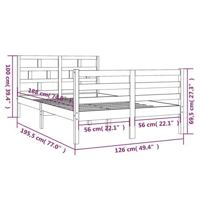 Ustvarite moderno spalnico s tem lesenim posteljnim okvirjem! To je praktičen in dekorativen dodatek za vaše notranje prostore. Vrhunski material: trdna borovina je čudovit naravni material. Borovina ima ravne vzorce, grče pa dajejo materialu njegov značilen, rustikalen videz.Trdne letvice: Letvice iz vezanega lesa omogočajo dobro porazdelitev teže in zagotavljajo, da vzmetnica ostane na mestu ob vsakem zasuku in obračanju vašega telesa med spanjem.Privlačen dizajn: Vzglavje in vznožje sta oblikovana tako dekorativno kot tudi praktično. Dodaja edinstven stil in udobje. Dobro je vedeti:Paket vsebuje samo posteljni okvir. Vzmetnica ni priložena. V naši trgovini si lahko ogledate ustrezne vzmetnice.Nekateri deli vzglavja so zaradi prostorskih omejitev zapakirani v škatlah v okvirju postelje.Ta posteljni okvir je primeren za vzmetnico velikosti 120 x 190 cm (4FT Small Double).Barva: BelaMaterial posteljnega okvirja: Trdna borovinaMaterial letvic: Vezan lesCelotne dimenzije: 195,5 x 126 x 100 cm (D x Š x V)Dimenzije vzglavja: 126 x 4 x 100 cm (Š x G x V)Velikost primerne vzmetnice: 120 x 190 cm (Š x D) (vzmetnica ni priložena)Potrebno sestavljanje: DaPaket vsebuje:1 x Posteljni okvir1 x Vzglavje1 x Vznožje 3101254