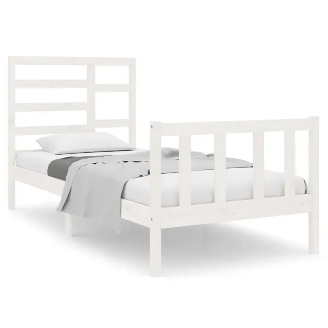 Ustvarite moderno spalnico s tem lesenim posteljnim okvirjem! To je praktičen in dekorativen dodatek za vaše notranje prostore. Vrhunska trdna borovina: Trdna borovina je čudovit naravni material. Borovina ima ravne vzorce, grče pa dajejo materialu njegov značilen, rustikalen videz.Močan posteljni okvir: Lesen okvir zagotavlja trdnost in stabilnost. Letvice iz vezanega lesa omogočajo dobro porazdelitev teže in zagotavljajo, da vzmetnica ostane na mestu ob vsakem zasuku in obračanju med spanjem.Privlačen dizajn: Vzglavje in vznožje sta oblikovana tako dekorativno kot tudi praktično. Dodaja edinstven stil in udobje.Primerna uporaba: Ta enojna postelja je odlična rešitev za majhne prostore, večnamenske sobe, enoposteljna ležišča in starejše otroke. Ne glede na vaše potrebe ali načrte ta enojna postelja ustreza različnim potrebam! Dobro je vedeti:Paket vsebuje samo posteljni okvir. Vzmetnica ni priložena. V naši trgovini si lahko ogledate ustrezne vzmetnice.Nekateri deli vzglavja so zaradi prostorskih omejitev zapakirani v škatlah v okvirju postelje.Ta posteljni okvir je primeren za vzmetnico velikosti 90 x 190 cm (3FT Single).Barva: BelaMaterial posteljnega okvirja: Trdna borovinaMaterial letvic: Vezan lesCelotne dimenzije: 195,5 x 96 x 104 cm (D x Š x V)Dimenzije vzglavja: 96 x 4 x 104 cm (Š x G x V)Velikost primerne vzmetnice: 90 x 190 cm (Š x D) (3FT Single) (vzmetnica ni priložena)Potrebno sestavljanje: DaPaket vsebuje:1 x Posteljni okvir1 x Vzglavje1 x Vznožje 3105891