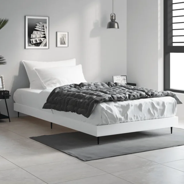 vidaXL Posteljni okvir bel 90x190 cm inženirski les