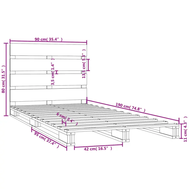 vidaXL Posteljni okvir bel 90x190 cm trdna borovina 3FT