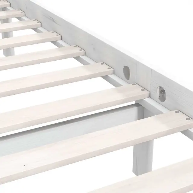 Posteljni okvir iz trdne borovine je močan in vzdržljiv. Ta postelja je primerna za vzmetnico velikosti 160x200 cm. Na tej postelji lahko vsako noč uživate v odličnem spancu!