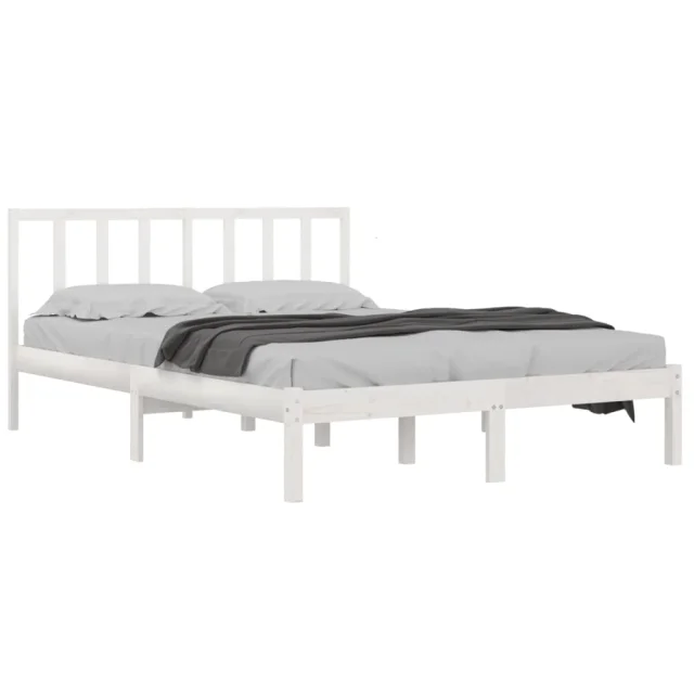 vidaXL Posteljni okvir bel iz trdne borovine 160x200 cm