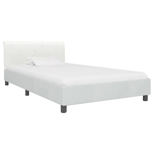 vidaXL Posteljni okvir belo umetno usnje 100x200 cm