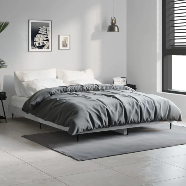 vidaXL Posteljni okvir betonsko siv 135x190 cm inženirski les