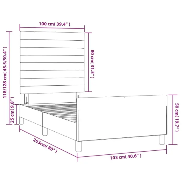 Zagotovite si boljši spanec s tem posteljnim okvirjem z vzglavjem! Je prijeten dodatek za vsako spalnico. Trpežno blago: Blago zagotavlja preprost in čist videz, poleg tega pa je zračno in trpežno.Nastavljiva višina: Vzglavje postelje je nastavljivo po višini po vaših željah.Podporne noge: Postelja je podprta s čvrstimi nogami, ki zagotavljajo njeno stabilnost, varnost in trdnost.Letvice iz vezanega lesa: Letvice iz vezanega lesa omogočajo dobro porazdelitev teže in zagotavljajo, da vzmetnica ostane na mestu ob vsakem zasuku in obračanju med spanjem.Udobna opora: To vzglavje za posteljo vam zagotavlja odlično oporo za hrbet, ko sedite na postelji in berete ali gledate filme. Opomba:Paket vsebuje samo posteljni okvir. Vzmetnica ni priložena. V naši trgovini si lahko ogledate ustrezne vzmetnice.Vsakemu izdelku je priložen priročnik za enostavno sestavljanje.Barva: ČrnaMaterial: Blago (100 % poliester), trden macesnov les, vezan les, inženirski lesMaterial polnila: PenaCelotne dimenzije: 203 x 103 x 118/128 cm (D x Š x V)Velikost primerne vzmetnice: 100 x 200 cm (Š x D) (vzmetnica ni priložena)Paket vsebuje:1 x Posteljni okvir z vznožjem1 x Vzglavje 3125116