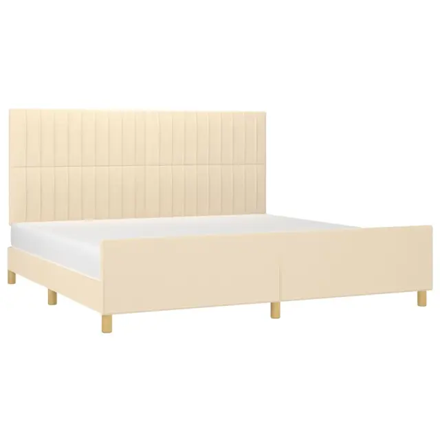 Zagotovite si boljši spanec s tem posteljnim okvirjem z vzglavjem! Je prijeten dodatek za vsako spalnico. Trpežno blago: Blago zagotavlja preprost in čist videz, poleg tega pa je zračno in trpežno.Nastavljiva višina: Vzglavje postelje je nastavljivo po višini po vaših željah.Podporne noge: Postelja je podprta s čvrstimi nogami, ki zagotavljajo njeno stabilnost, varnost in trdnost.Letvice iz vezanega lesa: Letvice iz vezanega lesa omogočajo dobro porazdelitev teže in zagotavljajo, da vzmetnica ostane na mestu ob vsakem zasuku in obračanju med spanjem.Udobna opora: To vzglavje za posteljo vam zagotavlja odlično oporo za hrbet, ko sedite na postelji in berete ali gledate filme. Opomba:Paket vsebuje samo posteljni okvir. Vzmetnica ni priložena. V naši trgovini si lahko ogledate ustrezne vzmetnice.Vsakemu izdelku je priložen priročnik za enostavno sestavljanje.Barva: KremMaterial: Blago (100 % poliester), trden macesnov les, vezan les, inženirski lesMaterial polnila: PenaCelotne dimenzije: 203 x 206 x 118/128 cm (D x Š x V)Velikost primerne vzmetnice: 200 x 200 cm (Š x D) (vzmetnica ni priložena)Paket vsebuje:1 x Posteljni okvir z vznožjem1 x Vzglavje 3125248