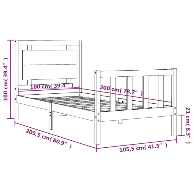 S tem lesenim posteljnim okvirjem lahko uživate v odličnem spancu! To je praktičen in dekorativen dodatek za vaše notranje prostore. Vzdržljiv material: Trdna borovina je čudovit naravni material. Borovina ima ravne vzorce, grče pa dajejo materialu njegov značilen, rustikalen videz. Ta postelja je izdelana iz trdnega borovega lesa, zato je trpežna in vzdržljiva.Letvice iz vezanega lesa: Letvice iz vezanega lesa zagotavljajo dobro porazdelitev teže, kar ležišču zagotavlja prepotrebno oporo in zračnost.Funkcionalno vzglavje in podnožje: Vzglavje in podnožje lesene postelje ohranjata ležišče na mestu. Poleg tega vzglavje zagotavlja odlično oporo hrbtu, ko sedite v postelji in berete ali gledate televizijo. Dobro je vedeti: Vzmetnica ni priložena tej postelji. Ponujamo različno izbiro ležišč. V naši trgovini si lahko ogledate ustrezne vzmetnice.Material: Trdna borovina (neobdelana)Celotne dimenzije postelje: 205,5 x 105,5 x 100 cm (D x Š x V)Višina prostora pod posteljo: 21 cmPrimerna velikost vzmetnice (vzmetnica ni vključena): 100 x 200 cm (Š x D)Potrebno sestavljanje: Da 3192156