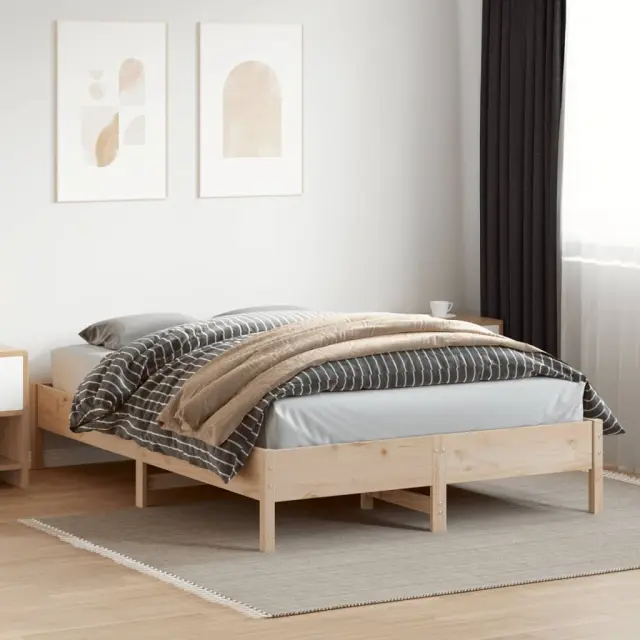 S tem lesenim posteljnim okvirjem lahko uživate v odličnem spancu! To je praktičen in dekorativen dodatek za vaše notranje prostore. Trdna borovina: Trdna borovina je čudovit naravni material. Borovina ima ravne vzorce, grče pa dajejo materialu njegov značilen, rustikalen videz.Letvice iz vezanega lesa: Letvice iz vezanega lesa omogočajo dobro porazdelitev teže in zagotavljajo, da vzmetnica ostane na mestu ob vsakem zasuku in obračanju med spanjem.Podporne noge: Postelja je podprta s čvrstimi nogami, ki zagotavljajo njeno stabilnost, varnost in trdnost. Dobro je vedeti:Vzmetnice niso priložene tej postelji. Ponujamo različno izbiro ležišč. V naši trgovini si lahko ogledate ustrezne vzmetnice.Material: Trdna borovina (neobdelana)Material letvic: Vezan lesCelotne dimenzije: 205,5 x 165,5 x 36,5 cm (D x Š x V)Velikost primerne vzmetnice: 160 x 200 cm (Š x D) (vzmetnica ni priložena)Potrebno sestavljanje: Da 842690