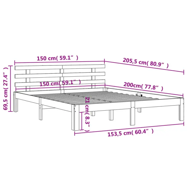 S tem lesenim posteljnim okvirjem lahko uživate v odličnem spancu! To je praktičen in dekorativen dodatek za vaše notranje prostore. Trdna borovina: Trdna borovina je čudovit naravni material. Borovina ima ravne vzorce, grče pa dajejo materialu njegov značilen, rustikalen videz. Ta postelja je izdelana iz trdnega borovega lesa, zato je trpežna in vzdržljiva.Močan posteljni okvir: Lesen okvir zagotavlja trdnost in stabilnost. Letvice iz vezanega lesa omogočajo dobro porazdelitev teže in zagotavljajo, da vzmetnica ostane na mestu ob vsakem zasuku in obračanju med spanjem.Udobno vzglavje: Klasično vzglavje omogoča udoben počitek med branjem ali gledanjem filma. Dobro je vedeti:Vzmetnica ni priložena tej postelji. Ponujamo različno izbiro ležišč. V naši trgovini si lahko ogledate ustrezne vzmetnice.Barva: Voščeno rjavaMaterial posteljnega okvirja: Trdna borovinaMaterial letvic: Vezan lesCelotne dimenzije: 205,5 x 153,5 x 69,5 cm (D x Š x V)Velikost primerne vzmetnice: 150 x 200 cm (Š x D) (vzmetnica ni priložena)Višina prostora pod posteljo: 21 cmPotrebno sestavljanje: Da 844275