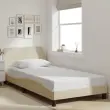 Zagotovite si boljši spanec s tem posteljnim okvirjem z vzglavjem! Je prijeten dodatek za vsako spalnico. Trpežno blago: Blago zagotavlja preprost in čist videz, poleg tega pa je zračno in trpežno.Podporne noge: Postelja je podprta s čvrstimi nogami, ki zagotavljajo njeno stabilnost, varnost in trdnost.Letvice iz vezanega lesa: Letvice iz vezanega lesa omogočajo dobro porazdelitev teže in zagotavljajo, da vzmetnica ostane na mestu ob vsakem zasuku in obračanju med spanjem.Udobna opora: To vzglavje za posteljo vam zagotavlja odlično oporo za hrbet, ko sedite na postelji in berete ali gledate filme.Valovita stranica: Valoviti videz posteljnega okvirja je eleganten in prefinjen. Dekorju v vašem domu dodaja sodoben in eleganten pridih ter tako postane osrednja točka spalnice. Dobro je vedeti:Vzmetnica ni priložena tej postelji. Ponujamo različno izbiro ležišč. V naši trgovini si lahko ogledate ustrezne vzmetnice.Barva: KremMaterial: Tkanina (100 % poliester), kovina, vezan les, inženirski lesCelotne dimenzije: 218 x 105 x 74,5 cm (D x Š x V)Velikost primerne vzmetnice: 100 x 200 cm (Š x D) (vzmetnica ni priložena)Potrebno sestavljanje: Da 373130