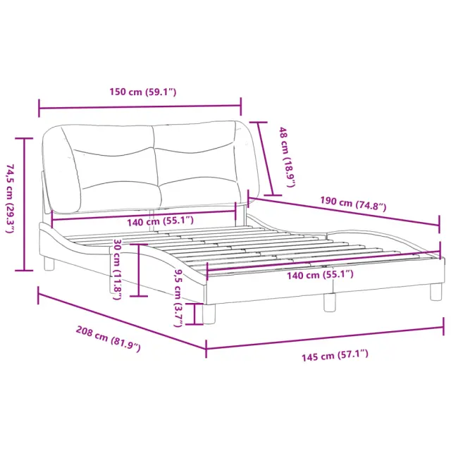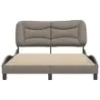 Zagotovite si boljši spanec s tem posteljnim okvirjem z vzglavjem! Je prijeten dodatek za vsako spalnico. Tkanina z dolgo življenjsko dobo: Tkanina je preprostega in čistega videza, hkrati pa je zračna, prijazna do kože in vzdržljiva.Letvice iz vezanega lesa: Letvice iz vezanega lesa omogočajo dobro porazdelitev teže in zagotavljajo, da vzmetnica ostane na mestu ob vsakem zasuku in obračanju med spanjem.Odlična podpora: Vzglavna stranica je napolnjena s PP vlakni za izjemno mehkobo in optimalno udobje ter zagotavlja odlično podporo hrbtu, ko sedite v postelji in berete ali gledate televizijo.Priročna zasnova: Vzglavna stranica ima zadrgo za preprosto namestitev, pripenjala na zadnji strani pa se lahko uporabijo za pritrditev LED lučk.Valovita stranica: Valoviti videz posteljnega okvirja je eleganten in prefinjen. Dekorju v vašem domu dodaja sodoben in eleganten pridih ter tako postane osrednja točka spalnice. Dobro je vedeti:Vzmetnica ni priložena tej postelji. Ponujamo različno izbiro ležišč. V naši trgovini si lahko ogledate ustrezne vzmetnice.Posteljni okvir z vzglavjem:Barva: TaupeMaterial: Tkanina (100 % poliester), kovina, trdna borovina, vezan lesCelotne dimenzije: 208 x 145 x 74,5 cm (D x Š x V)Velikost primerne vzmetnice: 140 x 190 cm (Š x D) (vzmetnica ni priložena)Oblazinjeno vzglavje:Barva: TaupeMaterial: Blago (100 % poliester)Material polnila: PP vlaknaDimenzije: 150 x 15 x 48 cm (D x Š x V)Primerna širina vzmetnice: 140 cmPotrebno sestavljanje: DaPaket vsebuje:1 x Posteljni okvir z vzglavjem1 x Oblazinjeno vzglavje 3207769