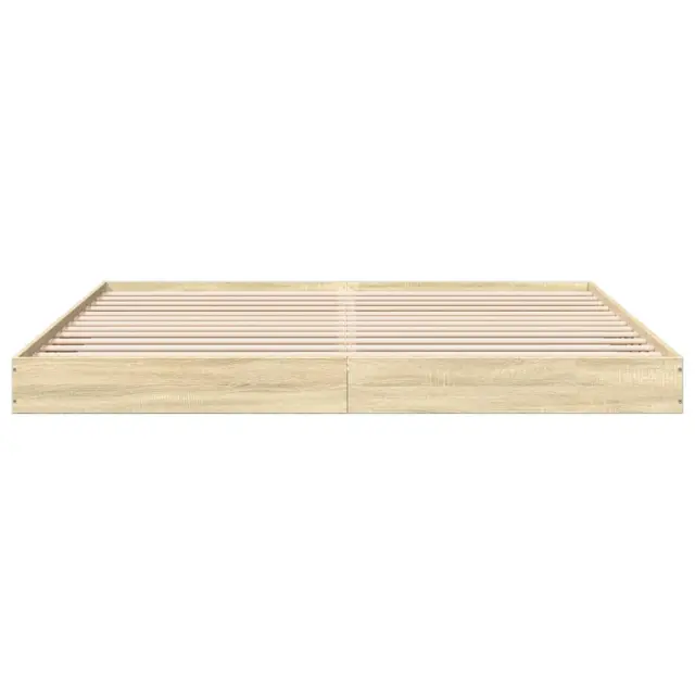 Zagotovite si boljši spanec s tem posteljnim okvirjem! Je prijeten dodatek za vsako spalnico. Vzdržljiv material: Inženirski les se ponaša z izjemno kakovostjo, gladko površino ter močjo, stabilnostjo in odpornostjo na vlago. Trdne letvice: Letvice iz vezanega lesa omogočajo dobro porazdelitev teže in zagotavljajo, da vzmetnica ostane na mestu ob vsakem zasuku in obračanju med spanjem. Moderna zasnova: Svojim notranjim prostorom dodajte moderen stil! Moderen stil notranjih prostorov vključuje čiste linije, minimalističen videz in naravno svetlobo. Dobro je vedeti:Vzmetnica ni priložena tej postelji. Ponujamo različno izbiro ležišč. V naši trgovini si lahko ogledate ustrezne vzmetnice.Barva: Sonoma hrastMaterial posteljnega okvirja: Inženirski lesMaterial letvic: Vezan lesCelotne dimenzije: 203 x 183 x 17 cm (D x Š x V)Velikost primerne vzmetnice: 180 x 200 cm (Š x D) (vzmetnica ni priložena)Potrebno sestavljanje: Da 842002