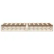 Dodajte svoji spalnici moderen pridih s tem klasičnim lesenim posteljnim okvirjem! To je praktičen in dekorativen dodatek za vaše notranje prostore. Stabilen in dolgotrajen okvir: Trdna borovina je znana po svoji trdnosti in trajnosti. Ravni vzorci in značilni vozli prispevajo k njenemu rustikalnemu čaru.Močan in stabilen okvir: Lesen okvir omarice zagotavlja trdnost in stabilnost.Trdne letvice: Letvice iz vezanega lesa omogočajo dobro porazdelitev teže in zagotavljajo, da vzmetnica ostane na mestu ob vsakem zasuku in obračanju med spanjem. Dobro je vedeti:Vzmetnica ni priložena tej postelji. Ponujamo različno izbiro ležišč. V naši trgovini si lahko ogledate ustrezne vzmetnice.Material: Trdna borovina (neobdelana)Celotne dimenzije: 200 x 90 x 25,5 cm (D x Š x V)Velikost primerne vzmetnice: 90 x 200 cm (Š x D) (vzmetnica ni priložena)Potrebno sestavljanje: Da 850833