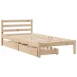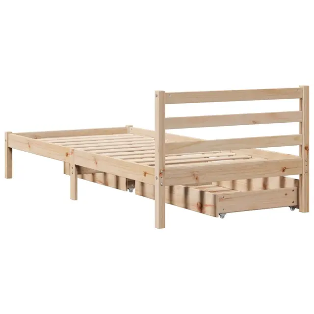 Zagotovite si boljši spanec s tem posteljnim okvirjem! Je prijeten dodatek za vsako spalnico. Stabilen in dolgotrajen okvir: Trdna borovina je znana po svoji trdnosti in trajnosti. Ravni vzorci in značilni vozli prispevajo k njenemu rustikalnemu čaru.Podnožje z letvami za optimalno podporo: Za podporo in zračnost ležišča je posteljni okvir opremljen z letvenim dnom.Popolnoma izkoriščen prostor: Ta posteljni okvir ima spodaj dva predala, ki omogočata shranjevanje predmetov, kot so dodatna posteljnina, sezonska oblačila in igrače.Preprosto manevriranje: Ta predal za shranjevanje pod posteljo ima štiri kolesa, ki zagotavljajo gladko in lahkotno manevriranje pri drsenju pod posteljo in izpod nje. Dobro je vedeti:Vzmetnica ni priložena tej postelji. Ponujamo različno izbiro ležišč. V naši trgovini si lahko ogledate ustrezne vzmetnice.Material: Trdna borovina (neobdelana)Potrebno sestavljanje: DaPostelja:Dimenzije: 205,5 x 95,5 x 69,5 cm (D x Š x V)Višina spalnega prostora, merjena od tal: 31 cmVišina prostora pod posteljo: 21 cmVelikost primerne vzmetnice: 90 x 200 cm (Š x D) (vzmetnica ni priložena)Največja nosilnost (z ležiščem): 100 kgZ letvenim podomPredal:Zunanje dimenzije: 95 x 55 x 17 cm (Š x G x V)Notranje dimenzije: 86,5 x 52,5 x 10 cm (Š x G x V)Maks. nosilnost (vsaka): 20 kgS štirimi kolesiPaket vsebuje:1 x Posteljni okvir z letvenim podnožjem2 x Predal 3301534