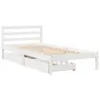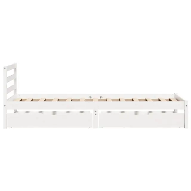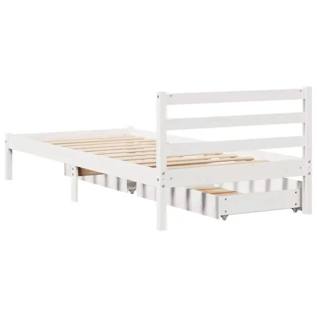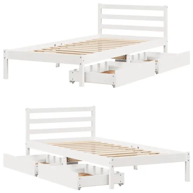 Zagotovite si boljši spanec s tem posteljnim okvirjem! Je prijeten dodatek za vsako spalnico. Stabilen in dolgotrajen okvir: Trdna borovina je znana po svoji trdnosti in trajnosti. Ravni vzorci in značilni vozli prispevajo k njenemu rustikalnemu čaru.Podnožje z letvami za optimalno podporo: Za podporo in zračnost ležišča je posteljni okvir opremljen z letvenim dnom.Popolnoma izkoriščen prostor: Ta posteljni okvir ima spodaj dva predala, ki omogočata shranjevanje predmetov, kot so dodatna posteljnina, sezonska oblačila in igrače.Preprosto manevriranje: Ta predal za shranjevanje pod posteljo ima štiri kolesa, ki zagotavljajo gladko in lahkotno manevriranje pri drsenju pod posteljo in izpod nje. Dobro je vedeti:Vzmetnica ni priložena tej postelji. Ponujamo različno izbiro ležišč. V naši trgovini si lahko ogledate ustrezne vzmetnice.Barva: BelaMaterial: Trdna borovinaPotrebno sestavljanje: DaPostelja:Dimenzije: 195,5 x 80,5 x 69,5 cm (D x Š x V)Višina spalnega prostora, merjena od tal: 31 cmVišina prostora pod posteljo: 21 cmVelikost primerne vzmetnice: 75 x 190 cm (Š x D) (vzmetnica ni priložena)Največja nosilnost (z ležiščem): 100 kgZ letvenim podomPredal:Zunanje dimenzije: 90 x 55 x 17 cm (Š x G x V)Notranje dimenzije: 81,5 x 52,5 x 10 cm (Š x G x V)Maks. nosilnost (vsaka): 20 kgS štirimi kolesiPaket vsebuje:1 x Posteljni okvir z letvenim podnožjem2 x Predal 3301525