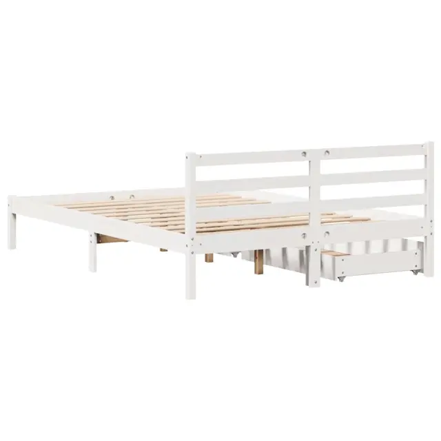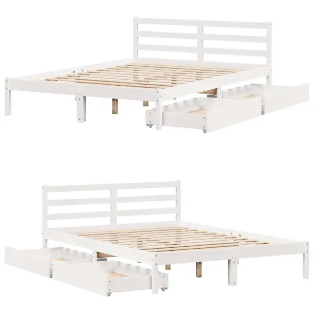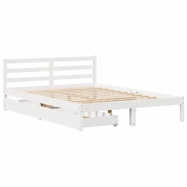 Zagotovite si boljši spanec s tem posteljnim okvirjem! Je prijeten dodatek za vsako spalnico. Stabilen in dolgotrajen okvir: Trdna borovina je znana po svoji trdnosti in trajnosti. Ravni vzorci in značilni vozli prispevajo k njenemu rustikalnemu čaru.Podnožje z letvami za optimalno podporo: Za podporo in zračnost ležišča je posteljni okvir opremljen z letvenim dnom.Popolnoma izkoriščen prostor: Ta posteljni okvir ima spodaj dva predala, ki omogočata shranjevanje predmetov, kot so dodatna posteljnina, sezonska oblačila in igrače.Preprosto manevriranje: Ta predal za shranjevanje pod posteljo ima štiri kolesa, ki zagotavljajo gladko in lahkotno manevriranje pri drsenju pod posteljo in izpod nje. Dobro je vedeti:Vzmetnica ni priložena tej postelji. Ponujamo različno izbiro ležišč. V naši trgovini si lahko ogledate ustrezne vzmetnice.Barva: BelaMaterial: Trdna borovinaPotrebno sestavljanje: DaPostelja:Dimenzije: 195,5 x 140,5 x 69,5 cm (D x Š x V)Višina spalnega prostora, merjena od tal: 31 cmVišina prostora pod posteljo: 21 cmVelikost primerne vzmetnice: 135 x 190 cm (Š x D) (vzmetnica ni priložena)Največja nosilnost (z ležiščem): 100 kgZ letvenim podomPredal:Zunanje dimenzije: 90 x 55 x 17 cm (Š x G x V)Notranje dimenzije: 81,5 x 52,5 x 10 cm (Š x G x V)Maks. nosilnost (vsaka): 20 kgS štirimi kolesiPaket vsebuje:1 x Posteljni okvir z letvenim podnožjem2 x Predal 3301531