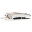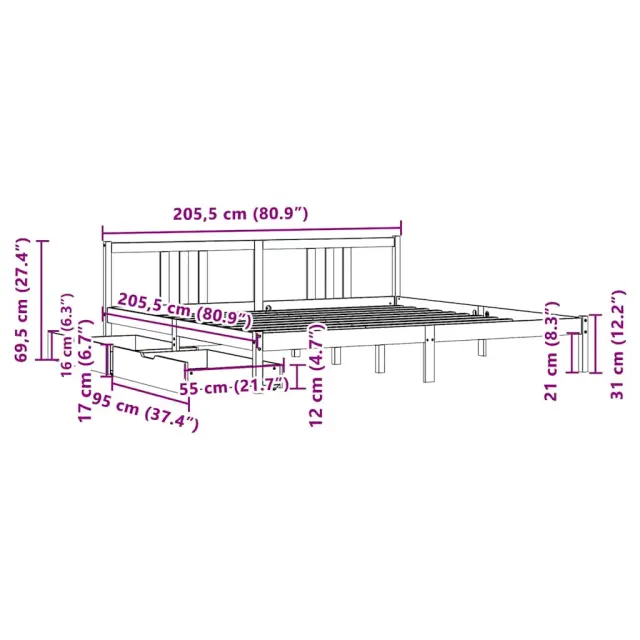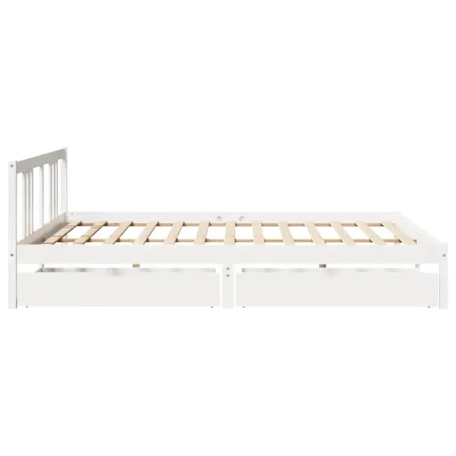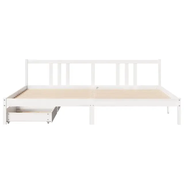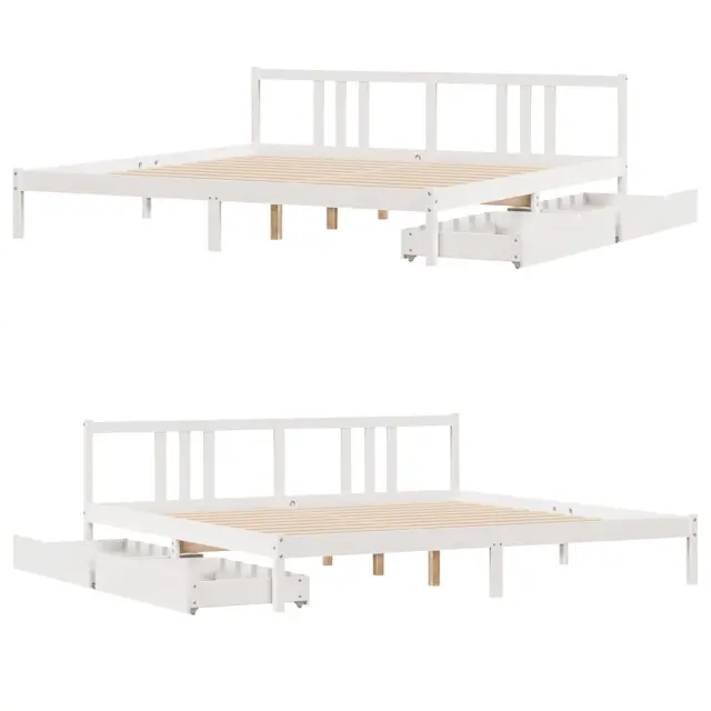 Zagotovite si boljši spanec s tem posteljnim okvirjem! Je prijeten dodatek za vsako spalnico. Stabilen in dolgotrajen okvir: Trdna borovina je znana po svoji trdnosti in trajnosti. Ravni vzorci in značilni vozli prispevajo k njenemu rustikalnemu čaru.Podnožje z letvami za optimalno podporo: Za podporo in zračnost ležišča je posteljni okvir opremljen z letvenim dnom.Popolnoma izkoriščen prostor: Ta posteljni okvir ima spodaj dva predala, ki omogočata shranjevanje predmetov, kot so dodatna posteljnina, sezonska oblačila in igrače.Preprosto manevriranje: Ta predal za shranjevanje pod posteljo ima štiri kolesa, ki zagotavljajo gladko in lahkotno manevriranje pri drsenju pod posteljo in izpod nje. Dobro je vedeti:Vzmetnica ni priložena tej postelji. Ponujamo različno izbiro ležišč. V naši trgovini si lahko ogledate ustrezne vzmetnice.Barva: BelaMaterial: Trdna borovinaPotrebno sestavljanje: DaPostelja:Dimenzije: 205,5 x 205,5 x 69,5 cm (D x Š x V)Višina spalnega prostora, merjena od tal: 31 cmVišina prostora pod posteljo: 21 cmVelikost primerne vzmetnice: 200 x 200 cm (Š x D) (vzmetnica ni priložena)Največja nosilnost (z ležiščem): 100 kgZ letvenim podomPredal:Zunanje dimenzije: 95 x 55 x 17 cm (Š x G x V)Notranje dimenzije: 86,5 x 52,5 x 10 cm (Š x G x V)Maks. nosilnost (vsaka): 20 kgS štirimi kolesiPaket vsebuje:1 x Posteljni okvir z letvenim podnožjem2 x Predal 3301645