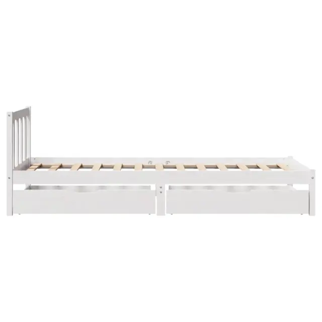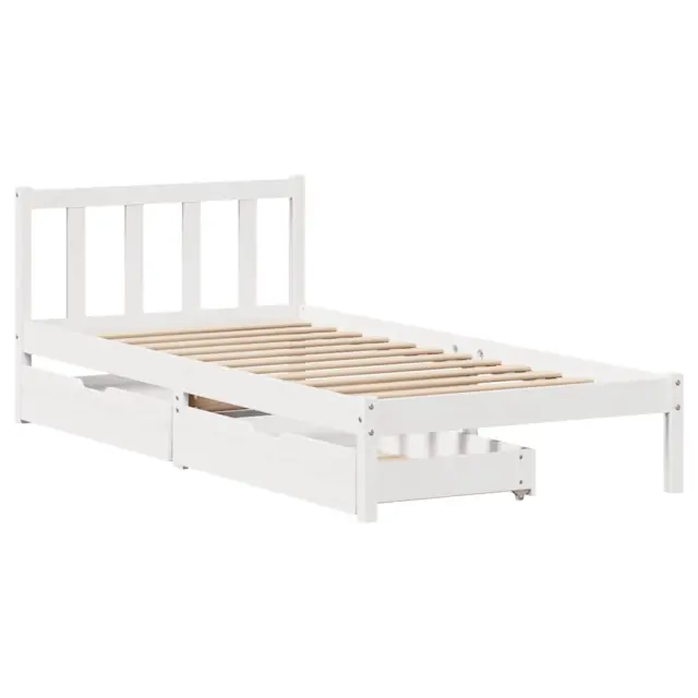 Zagotovite si boljši spanec s tem posteljnim okvirjem! Je prijeten dodatek za vsako spalnico. Stabilen in dolgotrajen okvir: Trdna borovina je znana po svoji trdnosti in trajnosti. Ravni vzorci in značilni vozli prispevajo k njenemu rustikalnemu čaru.Podnožje z letvami za optimalno podporo: Za podporo in zračnost ležišča je posteljni okvir opremljen z letvenim dnom.Popolnoma izkoriščen prostor: Ta posteljni okvir ima spodaj dva predala, ki omogočata shranjevanje predmetov, kot so dodatna posteljnina, sezonska oblačila in igrače.Preprosto manevriranje: Ta predal za shranjevanje pod posteljo ima štiri kolesa, ki zagotavljajo gladko in lahkotno manevriranje pri drsenju pod posteljo in izpod nje. Dobro je vedeti:Vzmetnica ni priložena tej postelji. Ponujamo različno izbiro ležišč. V naši trgovini si lahko ogledate ustrezne vzmetnice.Barva: BelaMaterial: Trdna borovinaPotrebno sestavljanje: DaPostelja:Dimenzije: 195,5 x 80,5 x 69,5 cm (D x Š x V)Višina spalnega prostora, merjena od tal: 31 cmVišina prostora pod posteljo: 21 cmVelikost primerne vzmetnice: 75 x 190 cm (Š x D) (vzmetnica ni priložena)Največja nosilnost (z ležiščem): 100 kgZ letvenim podomPredal:Zunanje dimenzije: 90 x 55 x 17 cm (Š x G x V)Notranje dimenzije: 81,5 x 52,5 x 10 cm (Š x G x V)Maks. nosilnost (vsaka): 20 kgS štirimi kolesiPaket vsebuje:1 x Posteljni okvir z letvenim podnožjem2 x Predal 3301460