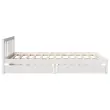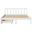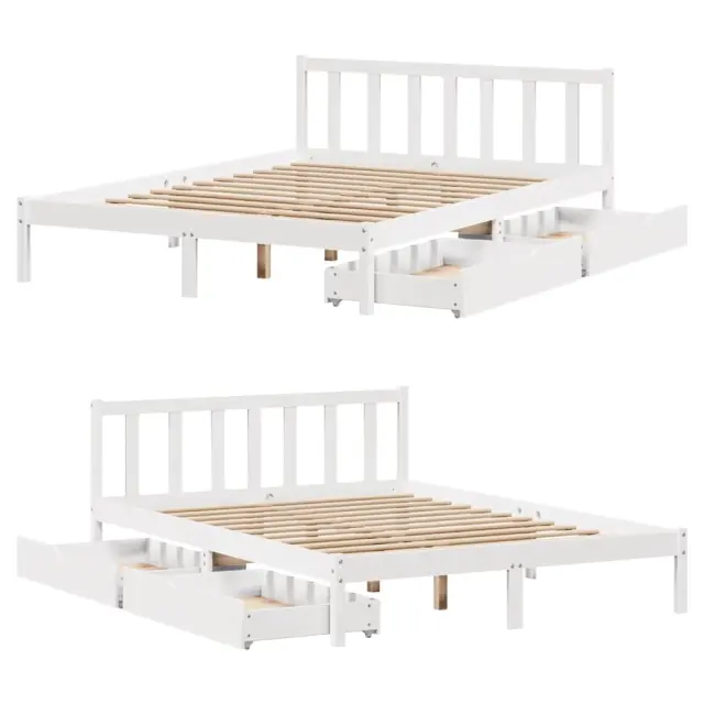 Zagotovite si boljši spanec s tem posteljnim okvirjem! Je prijeten dodatek za vsako spalnico. Stabilen in dolgotrajen okvir: Trdna borovina je znana po svoji trdnosti in trajnosti. Ravni vzorci in značilni vozli prispevajo k njenemu rustikalnemu čaru.Podnožje z letvami za optimalno podporo: Za podporo in zračnost ležišča je posteljni okvir opremljen z letvenim dnom.Popolnoma izkoriščen prostor: Ta posteljni okvir ima spodaj dva predala, ki omogočata shranjevanje predmetov, kot so dodatna posteljnina, sezonska oblačila in igrače.Preprosto manevriranje: Ta predal za shranjevanje pod posteljo ima štiri kolesa, ki zagotavljajo gladko in lahkotno manevriranje pri drsenju pod posteljo in izpod nje. Dobro je vedeti:Vzmetnica ni priložena tej postelji. Ponujamo različno izbiro ležišč. V naši trgovini si lahko ogledate ustrezne vzmetnice.Barva: BelaMaterial: Trdna borovinaPotrebno sestavljanje: DaPostelja:Dimenzije: 205,5 x 155,5 x 69,5 cm (D x Š x V)Višina spalnega prostora, merjena od tal: 31 cmVišina prostora pod posteljo: 21 cmVelikost primerne vzmetnice: 150 x 200 cm (Š x D) (vzmetnica ni priložena)Največja nosilnost (z ležiščem): 100 kgZ letvenim podomPredal:Zunanje dimenzije: 95 x 55 x 17 cm (Š x G x V)Notranje dimenzije: 86,5 x 52,5 x 10 cm (Š x G x V)Maks. nosilnost (vsaka): 20 kgS štirimi kolesiPaket vsebuje:1 x Posteljni okvir z letvenim podnožjem2 x Predal 3301478