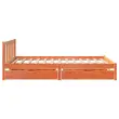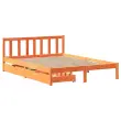 Zagotovite si boljši spanec s tem posteljnim okvirjem! Je prijeten dodatek za vsako spalnico. Stabilen in dolgotrajen okvir: Trdna borovina je znana po svoji trdnosti in trajnosti. Ravni vzorci in značilni vozli prispevajo k njenemu rustikalnemu čaru.Podnožje z letvami za optimalno podporo: Za podporo in zračnost ležišča je posteljni okvir opremljen z letvenim dnom.Popolnoma izkoriščen prostor: Ta posteljni okvir ima spodaj dva predala, ki omogočata shranjevanje predmetov, kot so dodatna posteljnina, sezonska oblačila in igrače.Preprosto manevriranje: Ta predal za shranjevanje pod posteljo ima štiri kolesa, ki zagotavljajo gladko in lahkotno manevriranje pri drsenju pod posteljo in izpod nje. Dobro je vedeti:Vzmetnica ni priložena tej postelji. Ponujamo različno izbiro ležišč. V naši trgovini si lahko ogledate ustrezne vzmetnice.Barva: Voščeno rjavaMaterial: Trdna borovinaPotrebno sestavljanje: DaPostelja:Dimenzije: 195,5 x 140,5 x 69,5 cm (D x Š x V)Višina spalnega prostora, merjena od tal: 31 cmVišina prostora pod posteljo: 21 cmVelikost primerne vzmetnice: 135 x 190 cm (Š x D) (vzmetnica ni priložena)Največja nosilnost (z ležiščem): 100 kgZ letvenim podomPredal:Zunanje dimenzije: 90 x 55 x 17 cm (Š x G x V)Notranje dimenzije: 81,5 x 52,5 x 10 cm (Š x G x V)Maks. nosilnost (vsaka): 20 kgS štirimi kolesiPaket vsebuje:1 x Posteljni okvir z letvenim podnožjem2 x Predal 3301488
